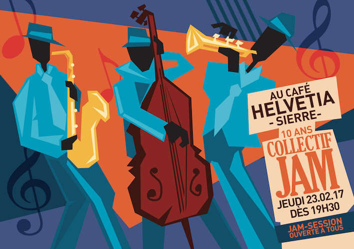 Am 23. Februar spielte ich in der Eröffnungsband des Collectif Jam im Café Helvetia in Sierre. Diese Jam Sessions waren mein Einstieg in den Jazz. Reinhard Heldner und Christian Zufferey waren es, die mich immer an diese Jam Sessions mitnahmen und mich motivierten weiter zu machen. Daher hat es mich auch sehr gefreut, am 10 jährigen Jubiläum mit Christophe Dayer und Nicolas Bianco zu spielen.